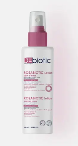 Lotion Rosabiotic Soin Intense : synergie d’actifs pour atténuer rougeurs sévères et couperose. Peau apaisée et protégée.