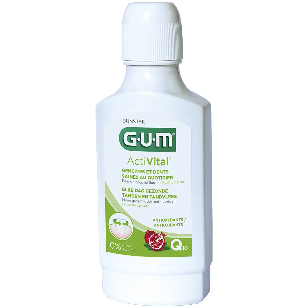 Conçu pour être utilisé deux fois par jour pendant au moins 30 secondes après le brossage des dents, notre bain de bouche multi-actions GUM ActiVital aide à préserver la santé de votre bouche, aujourd’hui et à long terme.