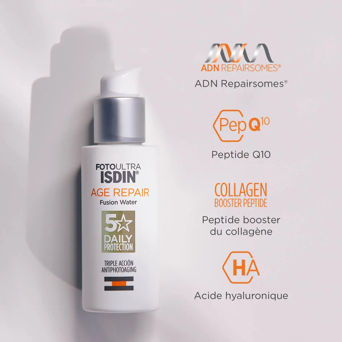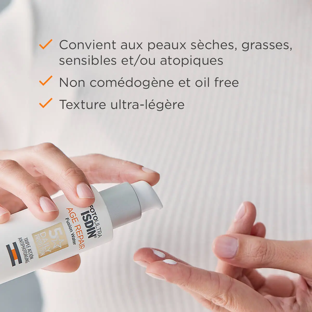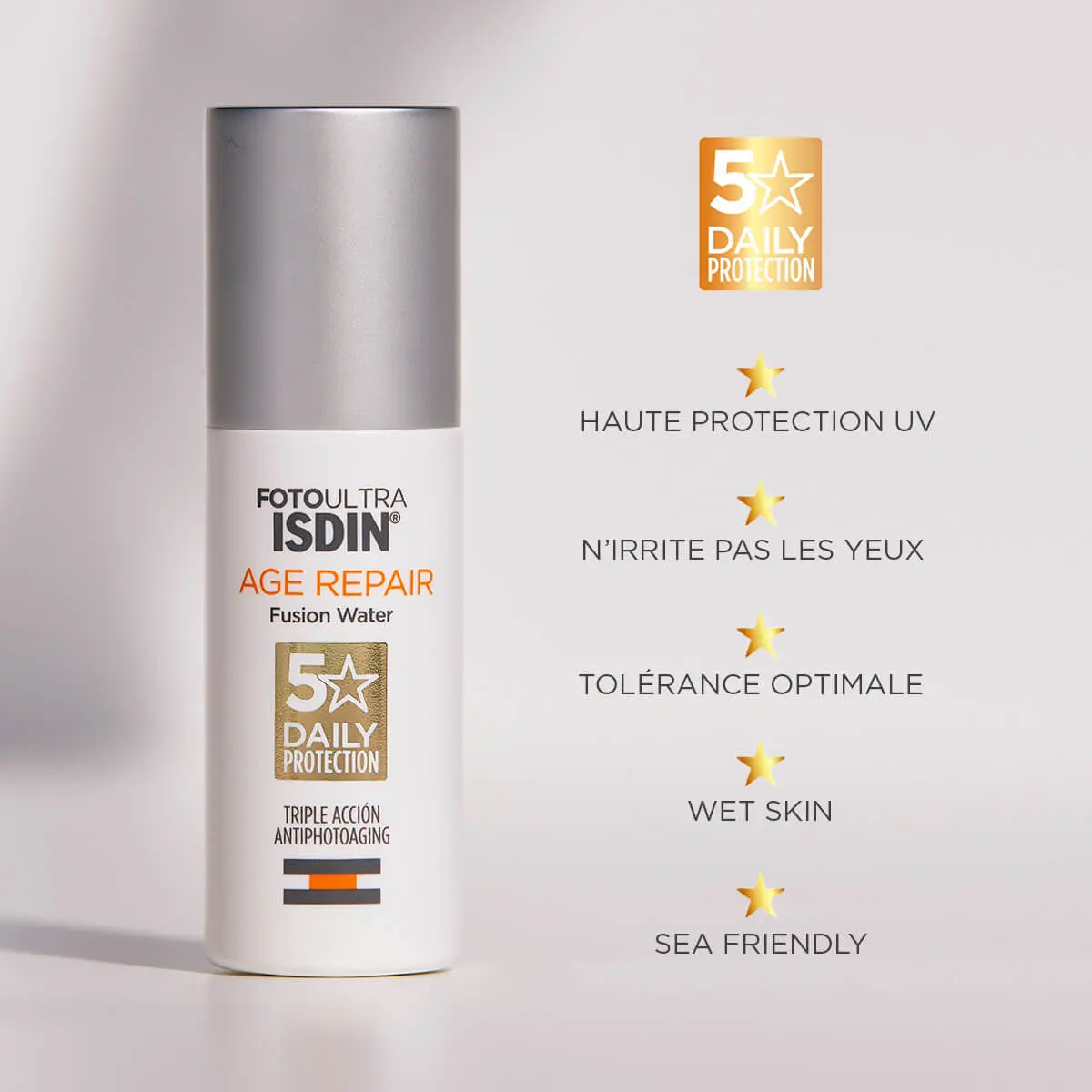 Isdin FotoUltra Age Repair Fusion Water Texture SPF50 50 ml est un fluide visage à usage quotidien contenant des actifs qui permettent de corriger le photo-vieillissement.