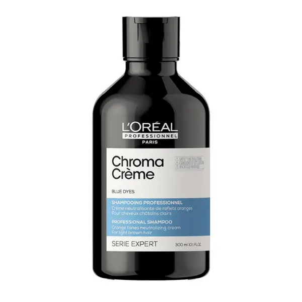 Avec le shampoing Chroma Crème Bleu, neutralisez vos reflets orangés indésirables et nourrissez intensément vos cheveux, comme un pro. Les cheveux récemment colorés contiennent différents colorants de couleurs primaires. Mais, après quelques lavages, des reflets orangés indésirables peuvent apparaître. C’est pourquoi, pour corriger les reflets orangés des cheveux châtains à châtain clair, choisissez le shampoing Chroma Crème Bleu. Il neutralise instantanément les reflets orangés et nourrit intensément la fibre sans l’alourdir. Le shampoing Chroma Crème Bleu offre une neutralisation homogène grâce à un film de formule plus fin garantissant un résultat de couleur uniforme, même sur les zones poreuses. Il apporte également plus de brillance. Sa texture concentrée, crémeuse et moussante offre une expérience unique. Utilisez le shampoing Chroma Crème Bleu en alternance avec votre shampoing habituel. Laissez poser 2 minutes ou plus selon le degré de neutralisation souhaité.