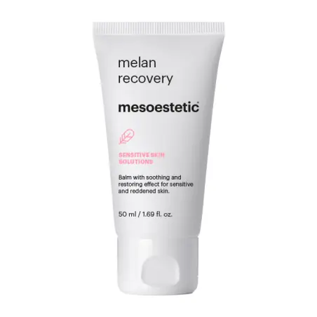 - Le Mesoestetic Melan Recovery est un baume apaisant et réparateur intensif conçu pour lutter contre les signes réactifs d’irritation et de rougeur de la peau, offrant une sensation de soulagement instantané