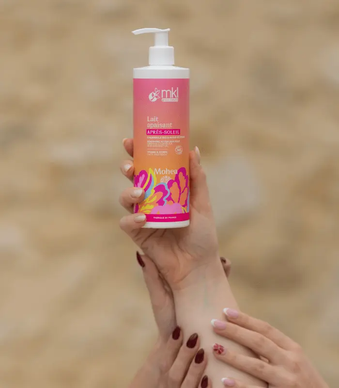 MKL Green Nature Mohea Lait Après-Soleil Apaisant Bio 400 ml est un lait après-soleil enrichi en monoï de Tahiti AO. Il hydrate et apaise toutes les peaux exposées au soleil. Sa texture rafraichissante et légère, embellit et prolonge le bronzage éclatant des vacances.