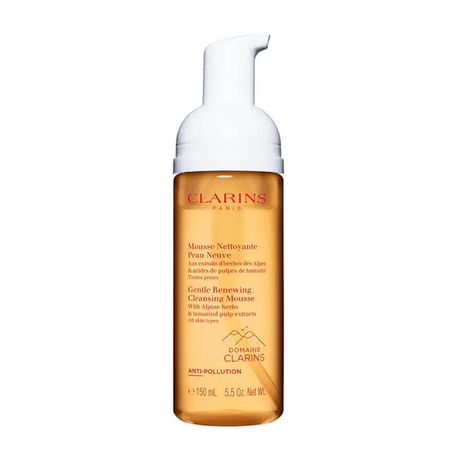 Le secret de cette Mousse Nettoyante Peau Neuve ? Un véritable cocktail de plantes qui prend soin de la peau et la rend plus belle jour après jour : – Le complexe douceur, qui associe deux actifs apaisants (gentiane jaune bio & melisse bio) cultivés dans le domaine Clarins, contribue à apaise, calmer et adoucir la peau à chaque démaquillage. – L’extrait de saponaire bio, plante au pouvoir auto-moussant, jouit de propriétés nettoyantes et émulsionnantes, idéales pour nettoyer la peau tout en douceur. – L’extrait de moringa, aide à éliminer les particules de pollution. – Le Complexe anti-pollution : squalane végétal, permet de renforcer le film hydrolipidique. – L’extrait d’acides de pulpes de tamarin, aide à éliminer les cellules mortes.
