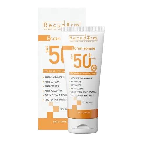 Protégez votre peau avec l’écran solaire RECUDERM SPF 50+, conçu pour offrir une très haute protection contre les rayons UVB et UVA. Sa formule avancée aide à prévenir le photovieillissement, les taches, et les dommages causés par la pollution et la lumière bleue. Adapté aux peaux sensibles, ce soin solaire invisible s’applique facilement et laisse un fini léger, sans résidu. Parfait pour un usage quotidien, il préserve la jeunesse et l’éclat naturel de votre peau.
