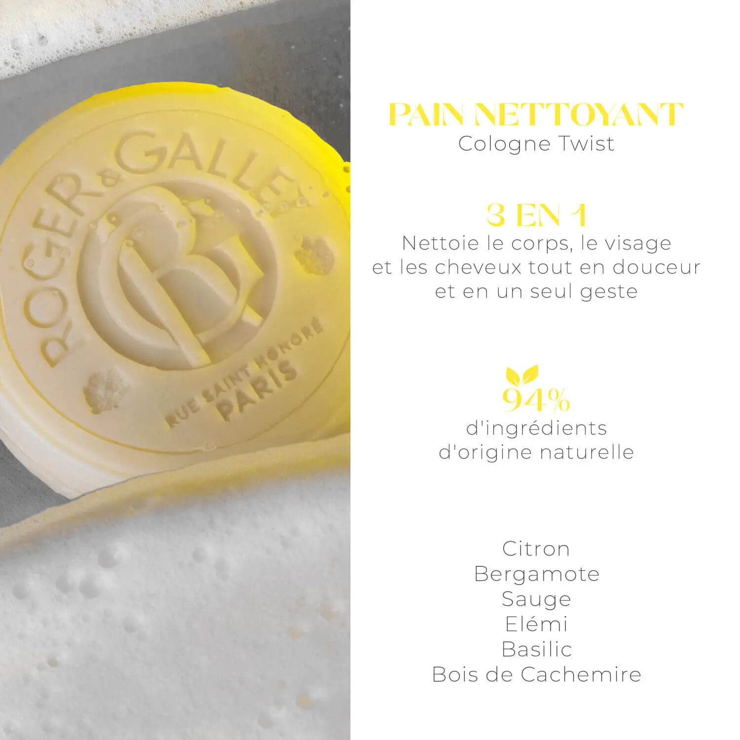 ROGER & GALLET PAIN NETTOYANT HOMME CORPS-VISAGE-CHEVEUX 100MG